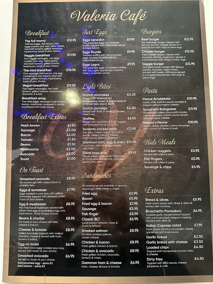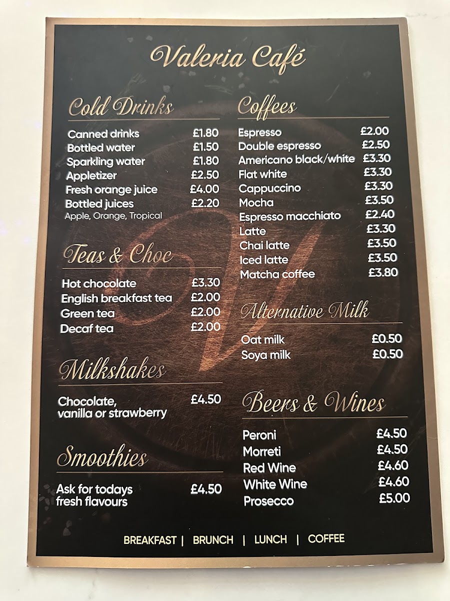 Valeria Cafe Menu